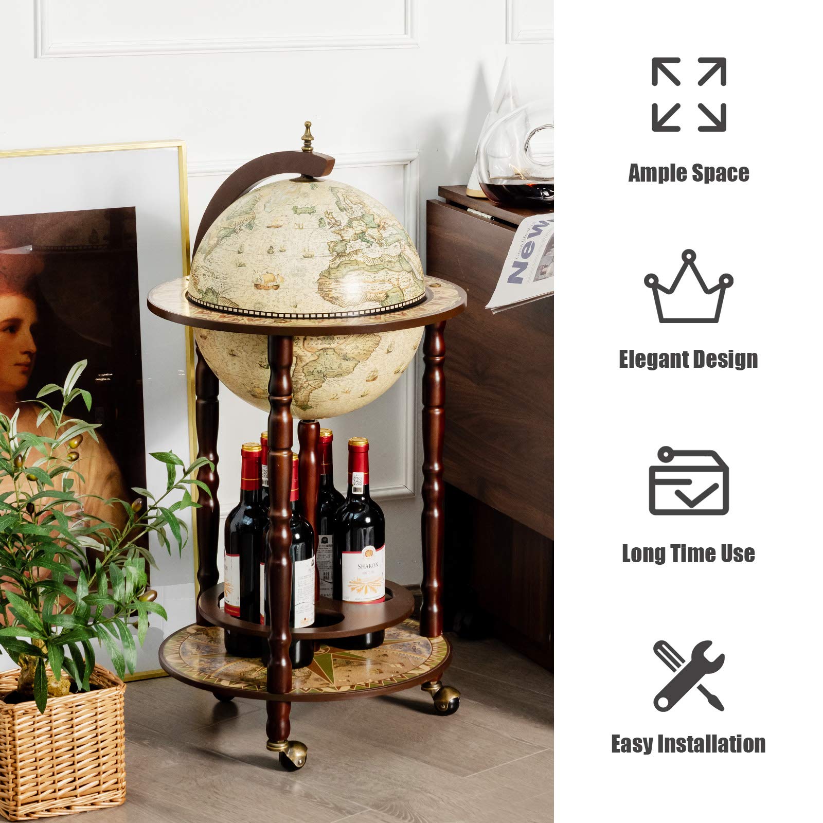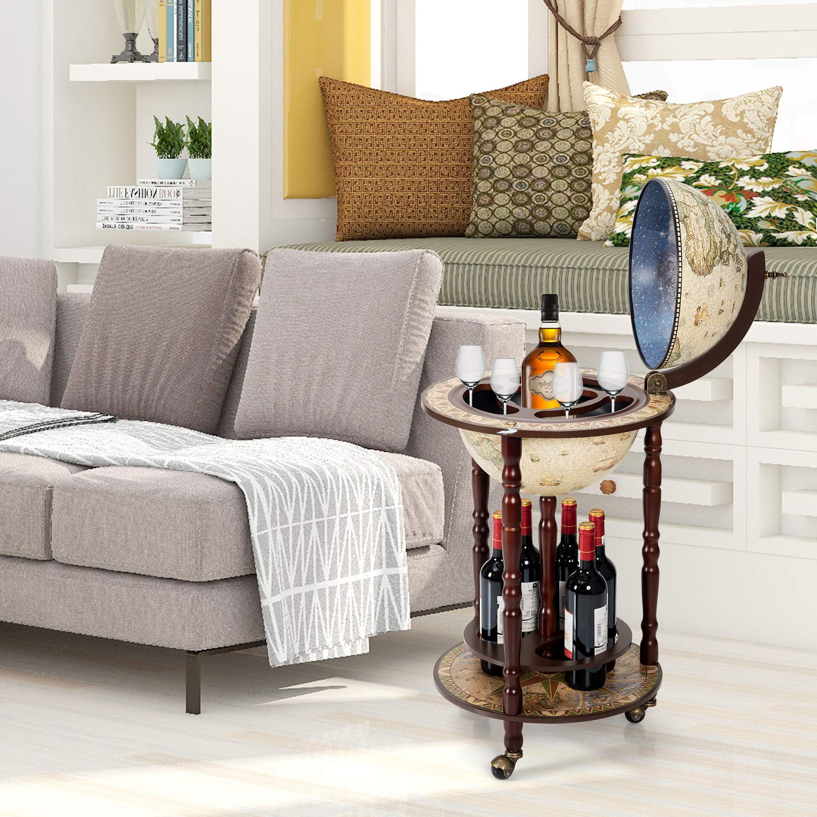 17″ Wood Globe Wine Bar Stand 16th Century Italian Rack Liquor Bottle Shelf – AGNETTIBOUTIQUE