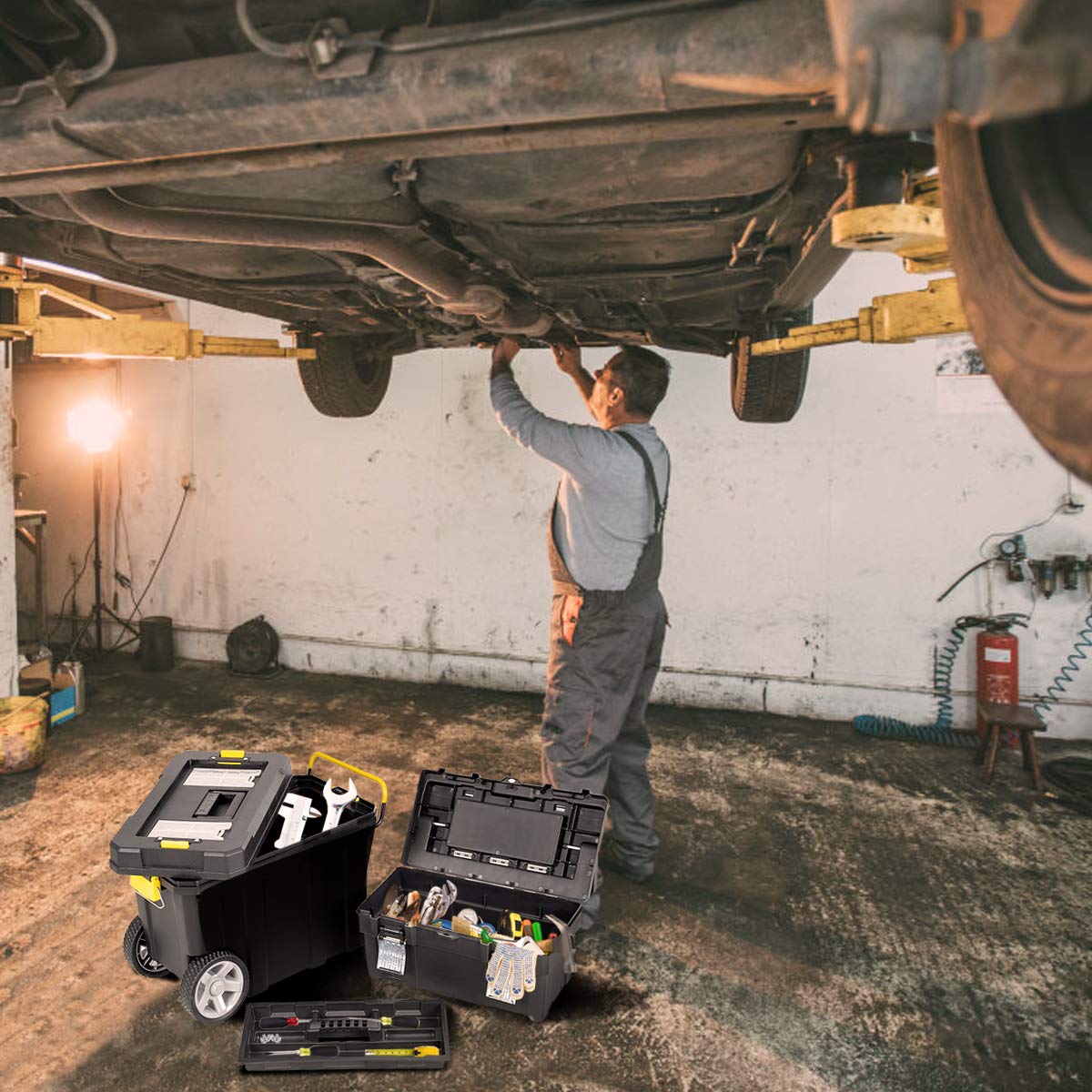 2-in-1 Tool Box Portable Rolling Toolbox Storage Solution Multi-Purpose Plastic Organizer Set – AGNETTIBOUTIQUE