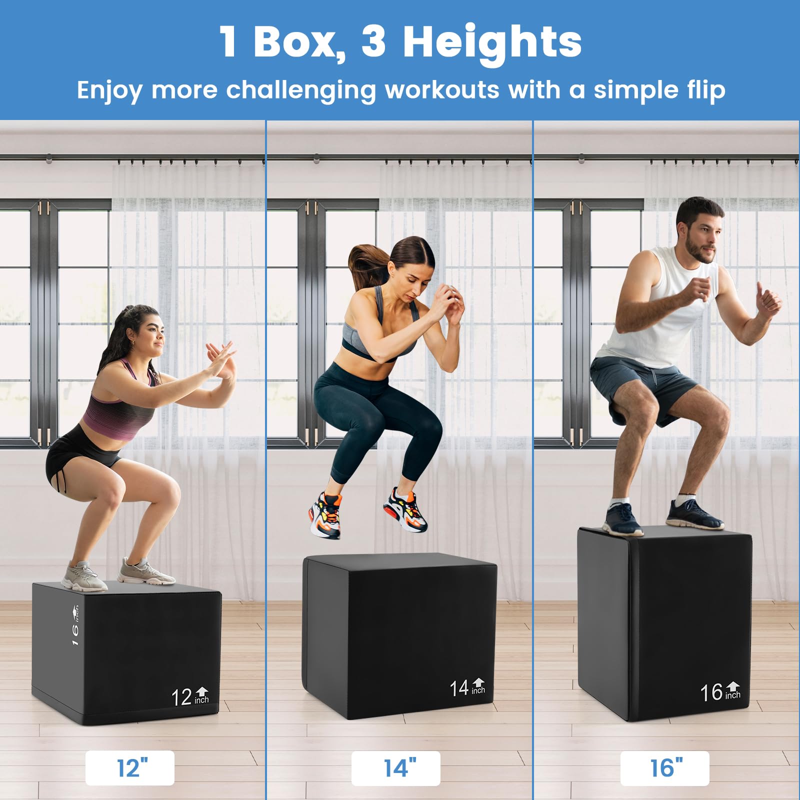 Elevate your workout routine with the versatile 3-in-1 versatile foam plyo box.