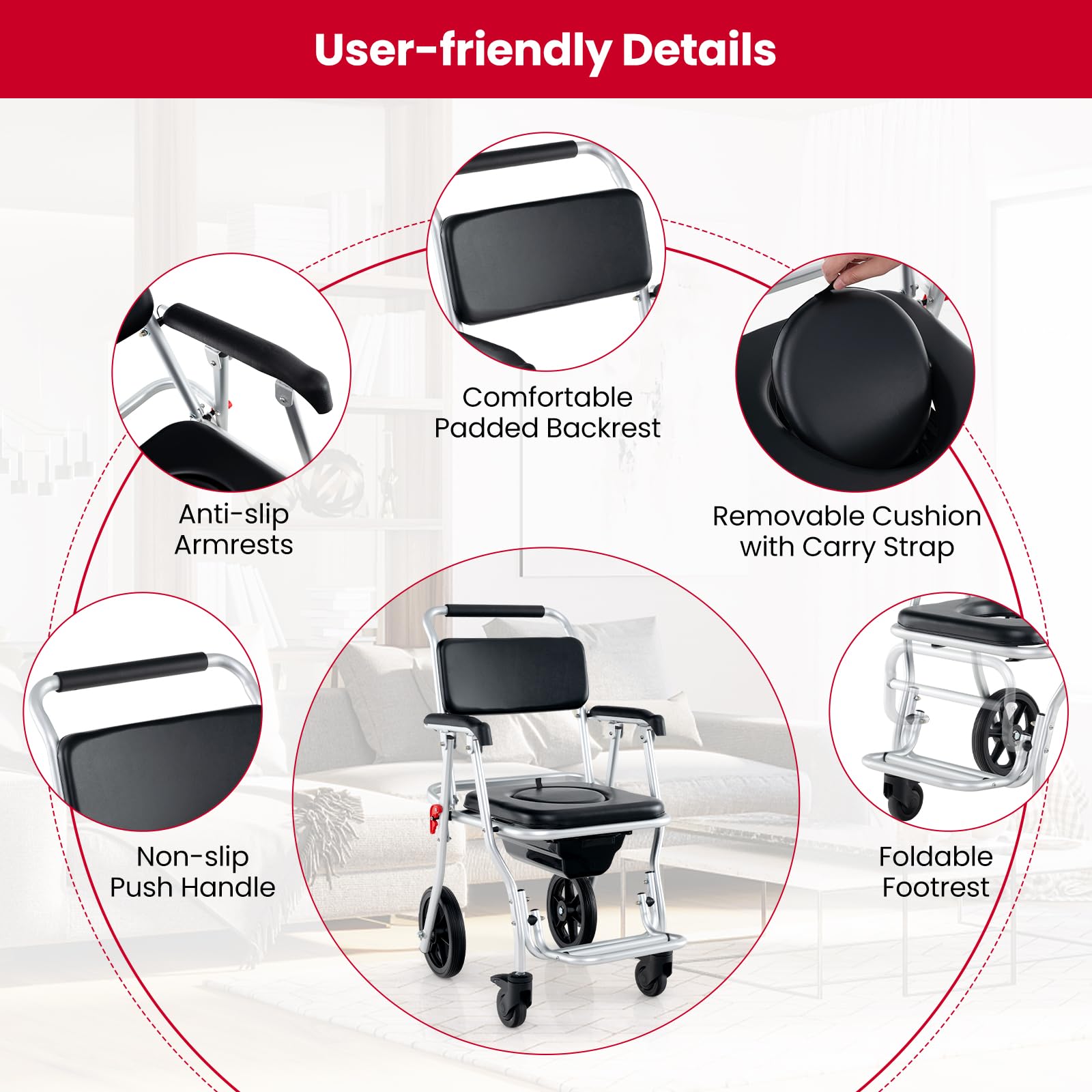 4 in 1 Shower Commode Wheelchair, 330lbs Foldable Bedside Commode Chair for Toilet with Arms – AGNETTIBOUTIQUE