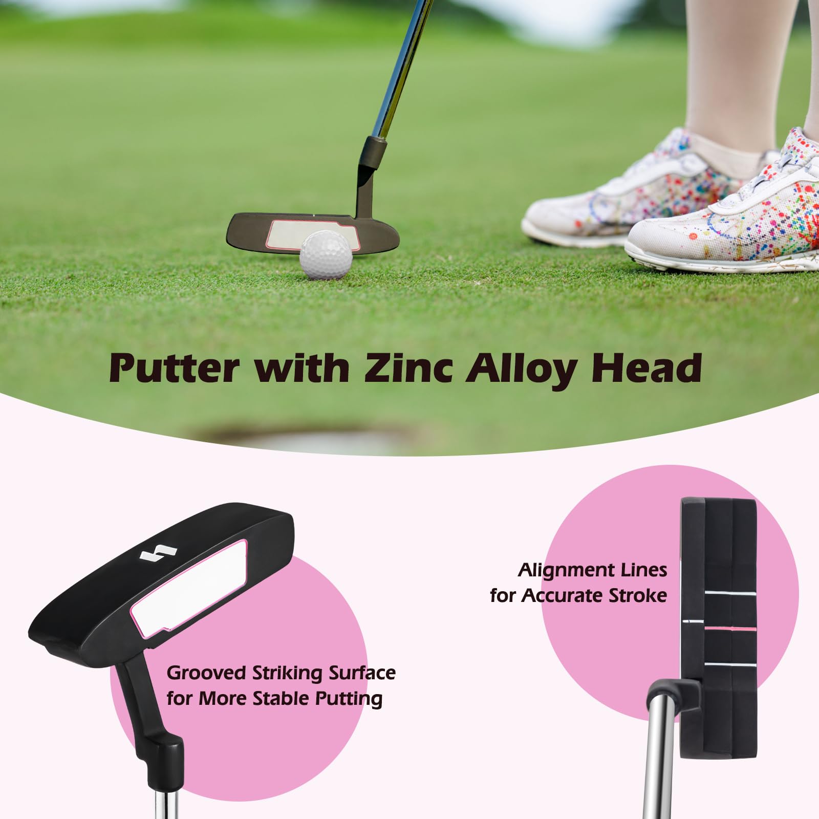 - ⛳【High Performance Putter】 The putter with a zinc alloy head is designed with a grooved striking surface for more stable putting. What’s more, the built-in alignment lines can help you sink more putts and lower your scores.