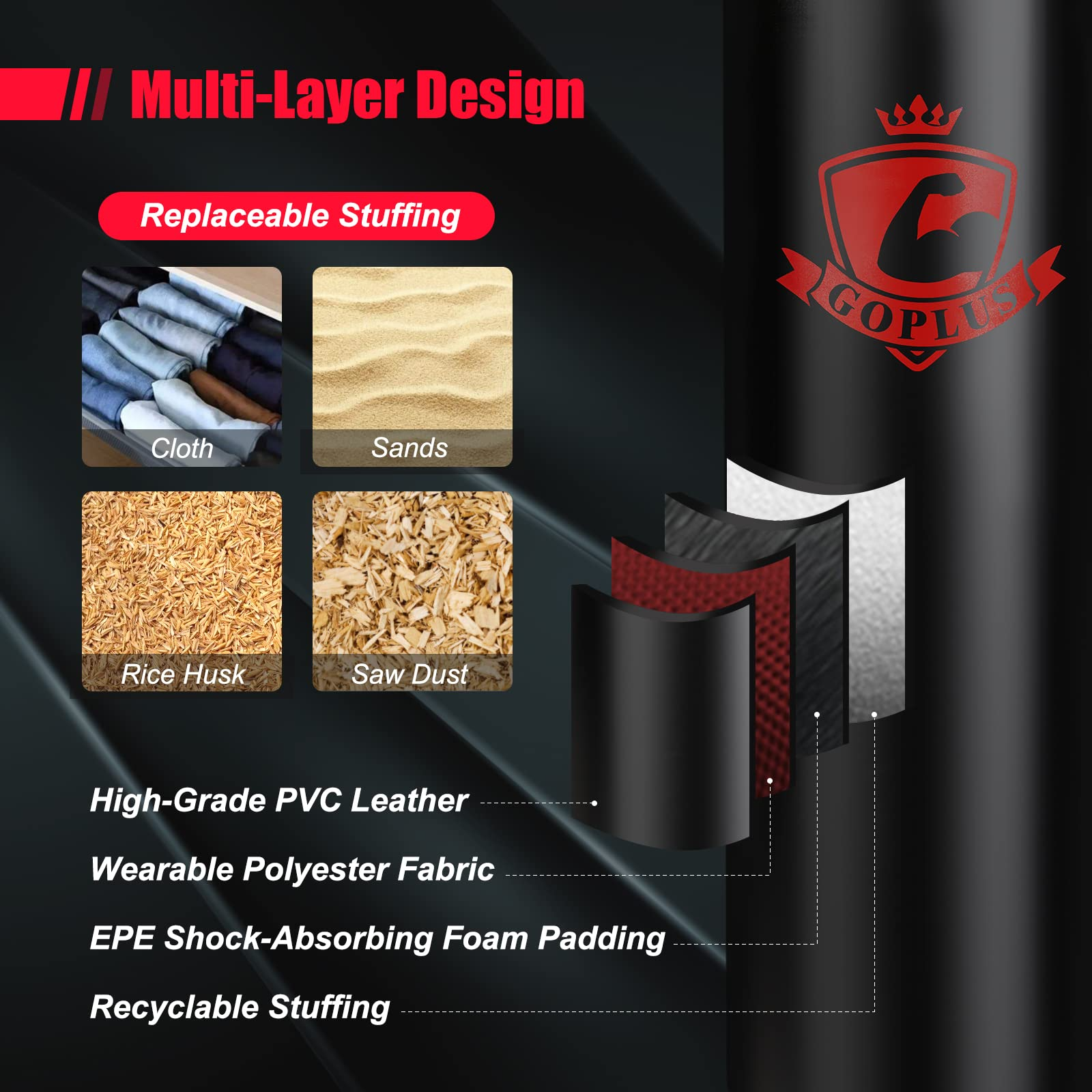 - Wearable Material & Fast Rebound: Made of high-grade material, this punching bag can withstand strong impact. The outer surface consists of selected PVC leather, polyester fabric, and EPE foam, not only resisting well to rips and scratches but also ensuring optimal resistance and rapid rebound.