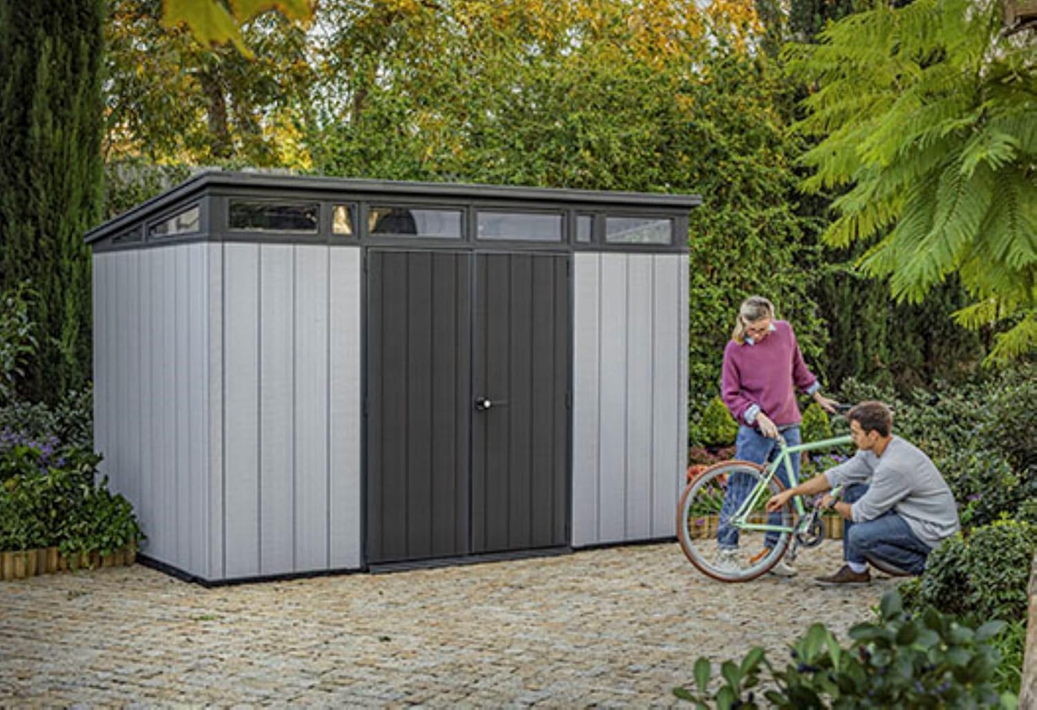 Keter Artisan 11×7 Modern Resin Outdoor Storage Shed Kit-Perfect to Store Patio Furniture, Garden Tools Bike Accessories, Beach Chairs and Lawn Mower, Grey & Black – AGNETTIBOUTIQUE