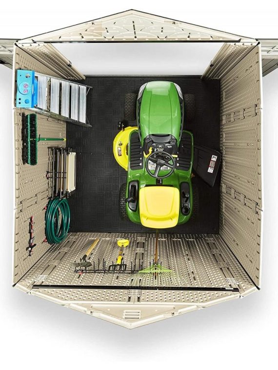 Rubbermaid 7×7 Ft Durable Weather Resistant Resin Outdoor Garden Storage Shed with Windows and Utility Hooks, SandAvailability: 1000 in stock
